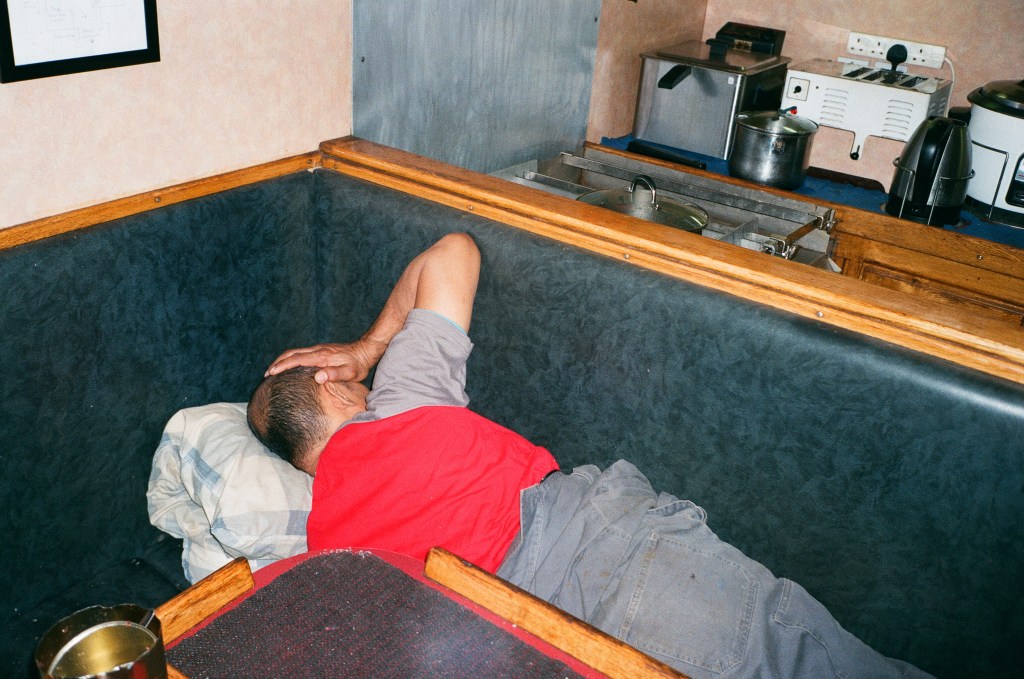 I’m going back to Scotland in a few weeks to continue my project, joining two boats, one out of Scrabster and the other out of the Shetland town of Lerwick. Before I started documenting the lives of fishermen, I must admit that I did have a few romantic, preconceived ideas about how these men work and live, I designed the entire look of the project in my head only to have almost every mental image erased by reality. Trawlermen don’t generally have time to stand on deck, looking wistfully out on brooding skies, while smoking a pipe – the only time a fisherman stands still on deck is when he’s taking a piss over the side of the boat, and they smoke home-rollies made with the cheapest duty-free tobacco they can buy. Moody, brooding clouds with shafts of heavenly sun beams are rare, most of the time the sky is either a single block of grey or the tar-black of night.
