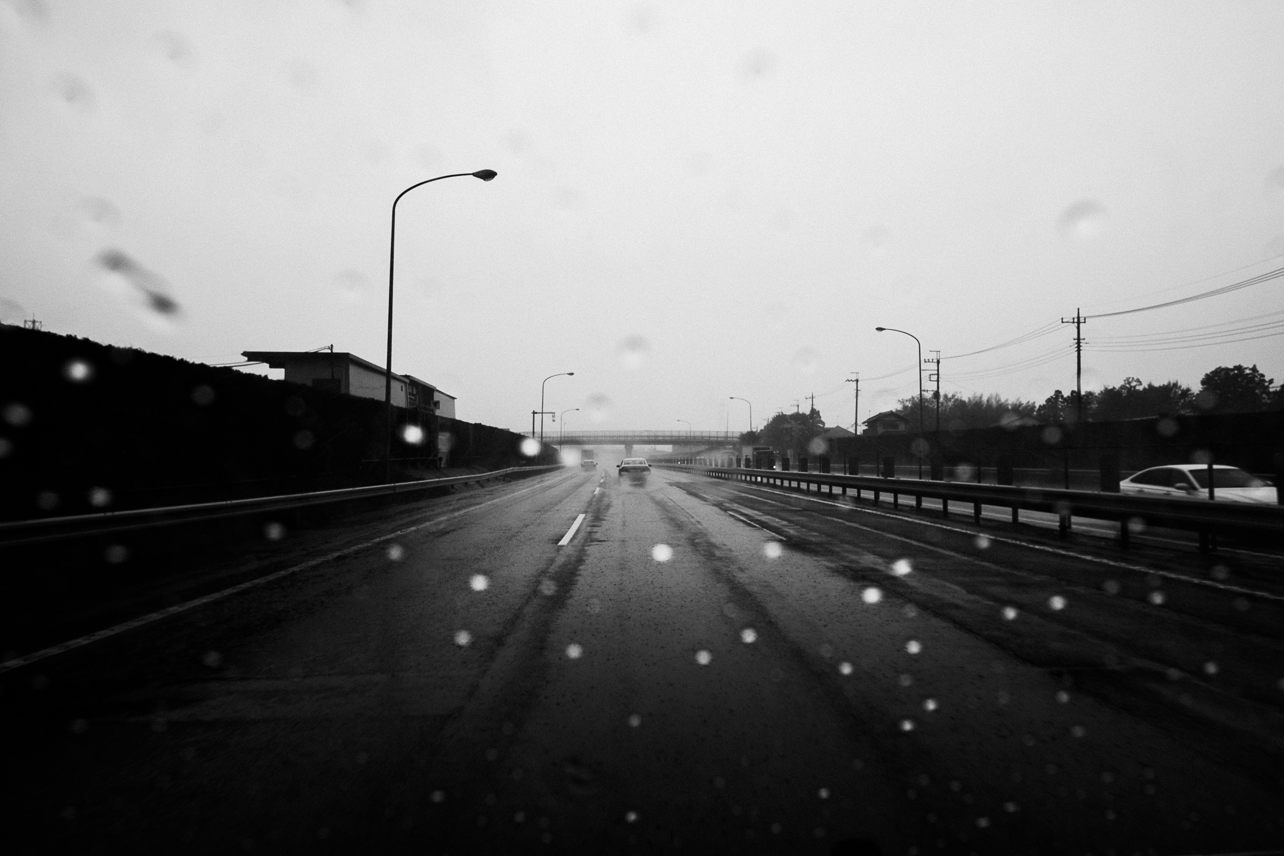 The rain falls in sheets of glass